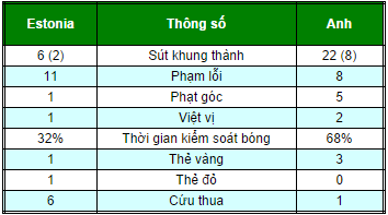 Chung cuộc: Estonia 0–1 Anh