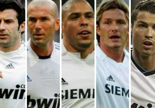 Đó là Luis Figo (từ đại kình địch Barcelona, 60 triệu euro), Ronaldo (Inter Milan, 45 triệu euro), David Beckham (MU, 37 triệu euro) và đặc biệt là Zinedine Zidane (Juventus, 73 triệu euro) ở nhiệm kì 1. Đó là những thương vụ đắt giá nhất lịch sử bóng đá thế giới như Kaka (65 triệu euro), James Rodriguez (80 triệu euro), Cristiano Ronaldo (96 triệu euro) hay Gareth Bale (100 triệu euro) ở nhiệm kì sau.